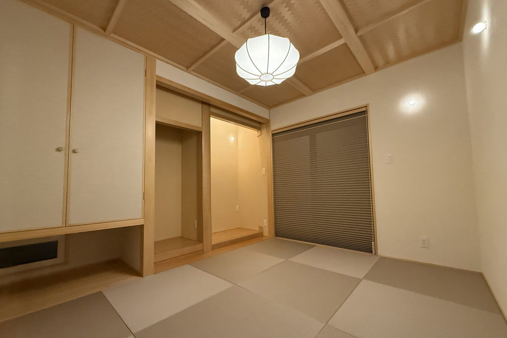 内装は、骨材を小さめにして約3mm 厚の「なし目塗り」で仕上げます。他の塗壁材の1 ~ 2mm 塗りに比べて、湿気の吸収・放出能力が非常に高く、梅雨や水まわりのジメジメもぐんぐん吸収。乾燥期には余分な湿気を放出して、空調や換気だけでは補いきれない湿度を調整し、快適な室内湿度を保ちます。
