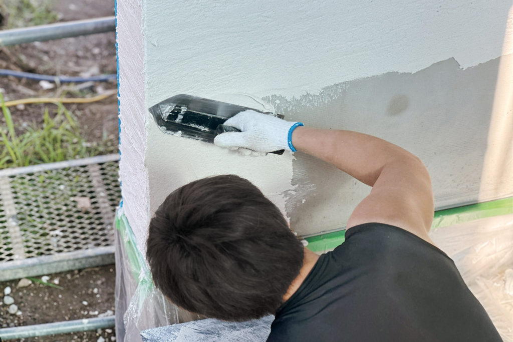 施工後は、年月とともに空気中の二酸化炭素と反応して徐々に硬化・石化していきます。主成分の石灰石に戻るには約100 年かかるとされ、時間とともに劣化するどころか、むしろ耐久性が増していくのが特徴です。