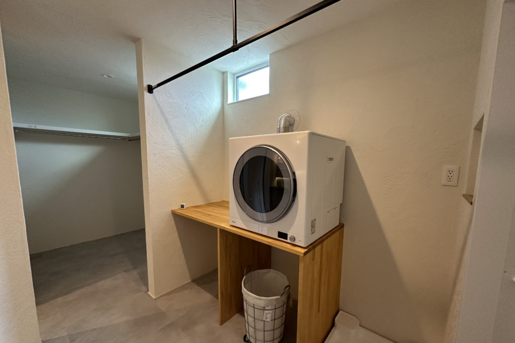 脱衣所にたまった洗濯物を洗濯、乾燥機、室内干しをして、ファミクロに収納。