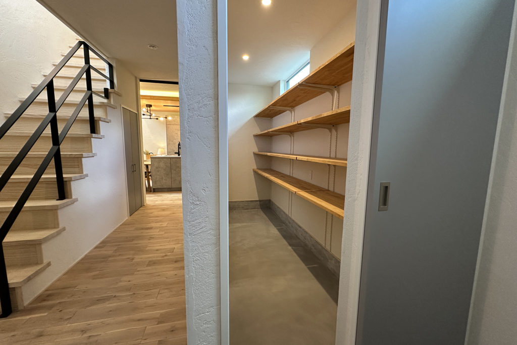 お買い物して帰宅したら、玄関からパントリーへ、荷物を置いて、使う食材はそのままキッチンへ。