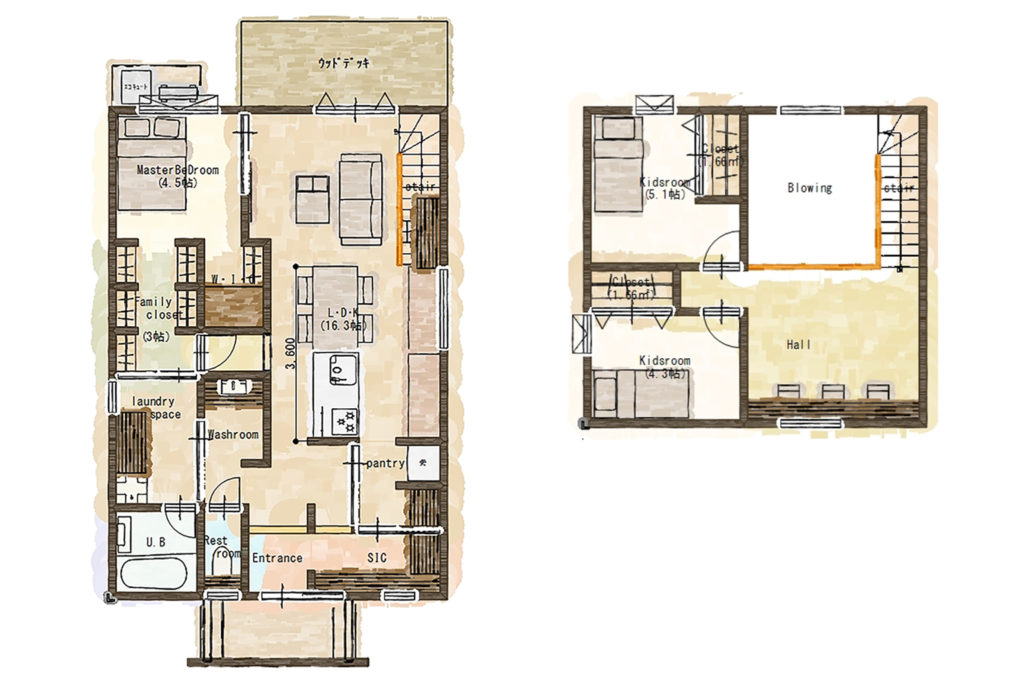 吹抜けが開放的なリビングやパントリー・SICなどの充実した収納も魅力。