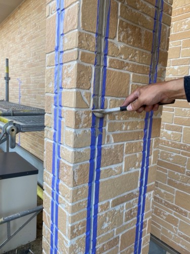 模様塗りの際に特殊な技法(ローラーなど)を用いて、テクスチャーや模様を加えていきます。これにより、まるで新築のような外観が作り上げられます。