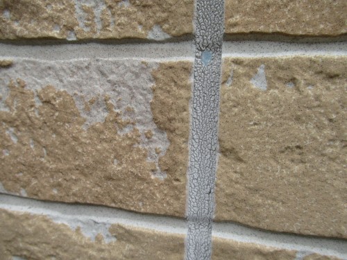 通常、塗装下地のコーキング打ち替えは白色を打ち替えますが、弊社では目地に地震等でひび割れが出た際、白では目立つので、仕上げ類似色のコーキングを充填しております!もしものひび割れが出た場合、同色なので目立たない為です!