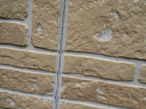 外壁は比較的程度がよかったですが、問題はサイディングをつなぐ目地コーキングです。経年劣化により、コーキングが弾力を失い、硬くなっていました。弾力が失われるとヒビ割れや亀裂が生じて防水性がおち、そのままにしていると壁の内側に雨漏りする原因になります。