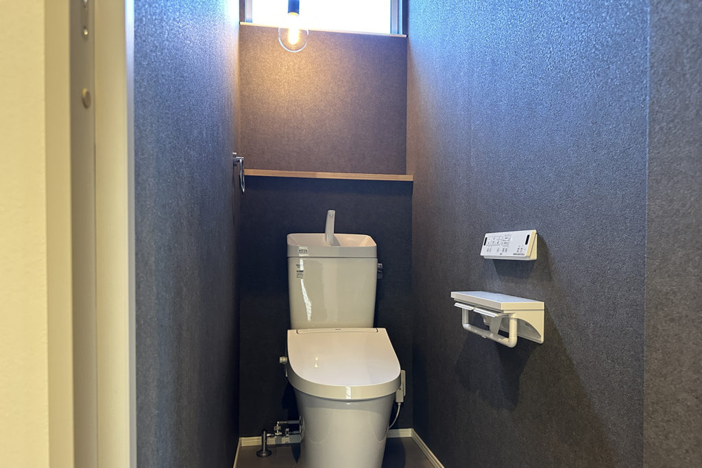 室内は吹き抜けを設け、南と東から光を取り込む設計。日中は照明に頼らず過ごせる明るさを確保しています。壁付けキッチンで空間を有効活用し、4LDKを実現。冬場は1階のエアコン1台で家全体が暖まる、性能と間取りの工夫が活きた住まいです。