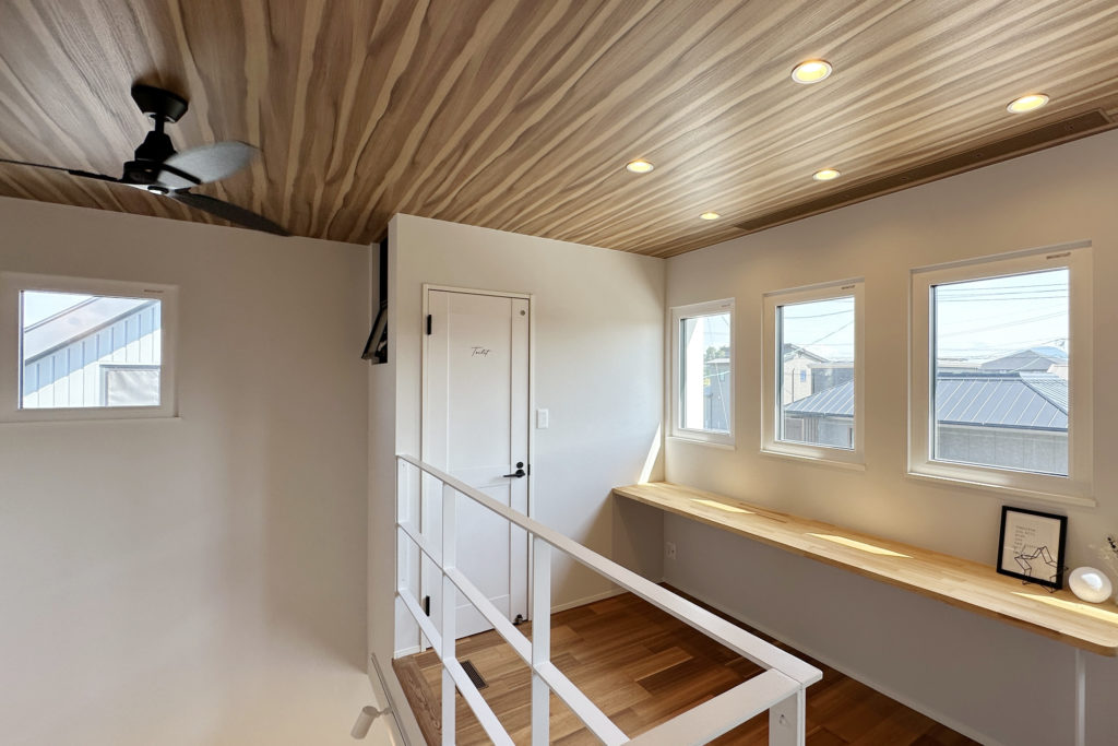 大分県日出町の施工事例です。「快適」と「遊び心」を両立した住まい。高断熱・高気密・高耐震の “未来パネル” による安心の住まいに、全館空調システムを装備。季節を問わず快適な室内環境を実現します。