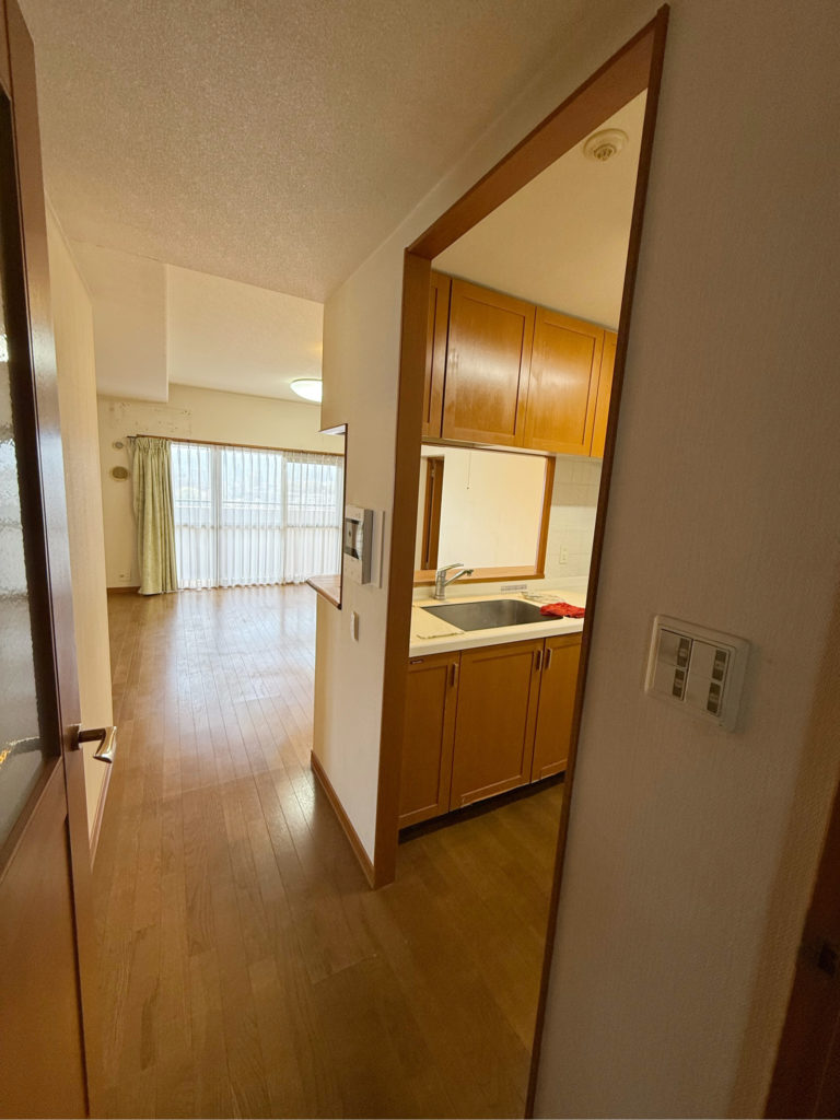 吊り戸棚と袖壁をなくし空間を広く、LDKがまとまった一つの空間になり、広さを感じるとともにすっきりした印象に。